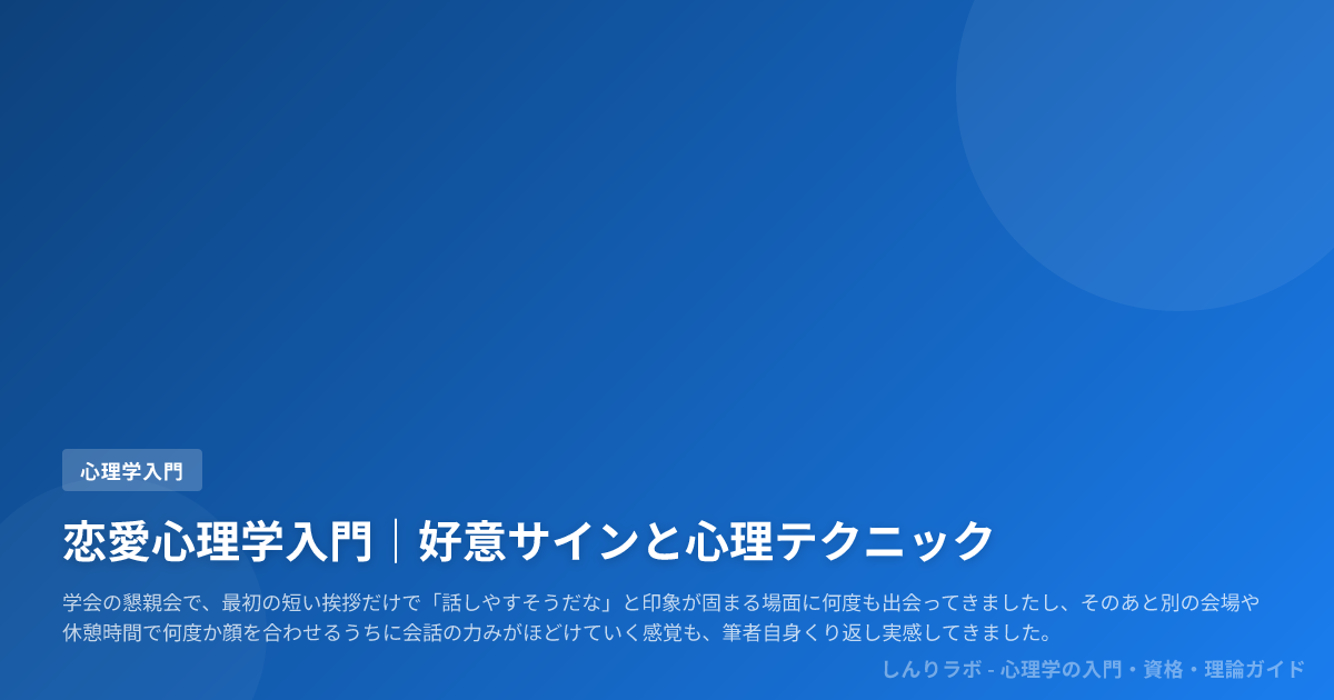 恋愛心理学は相手を操る裏ワザ集ではなく、社会心理学や対人関係研究、非言語コミュニケーション研究をまたいで、人がどう親しくなり、どんな合図を送り合うのかを考えるための知見の集まりです。