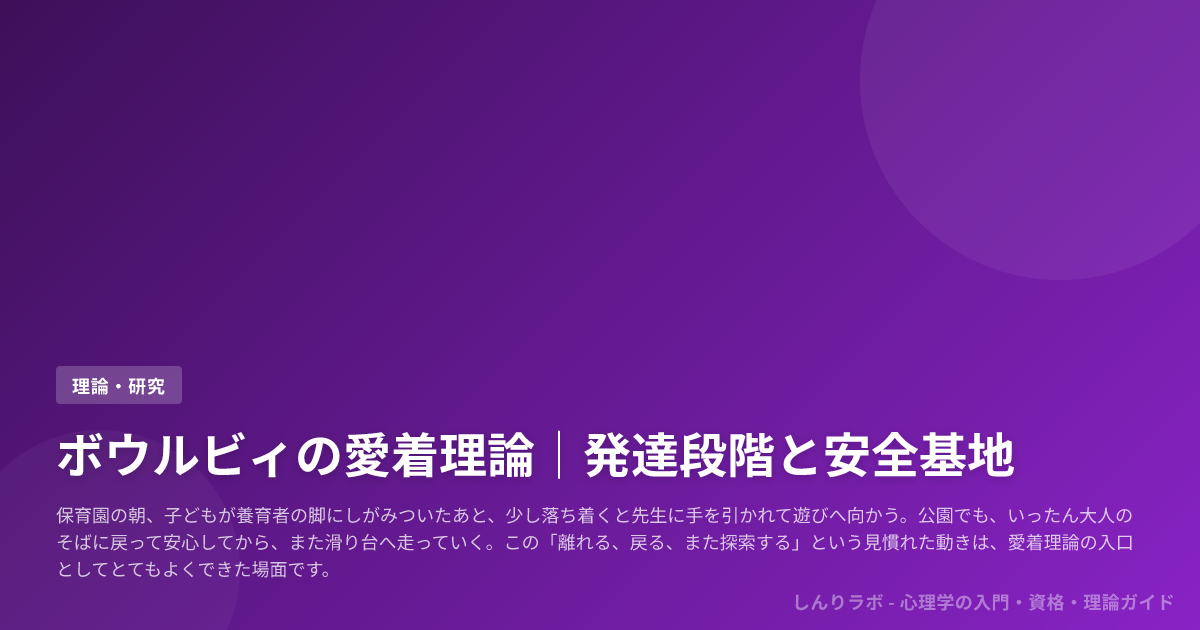 日本女子大学の心理学コラムでも、養育者が子どもにとっての安全基地として働くことが、愛着の理解で中心になると整理されています(『日本女子大学』によると)。