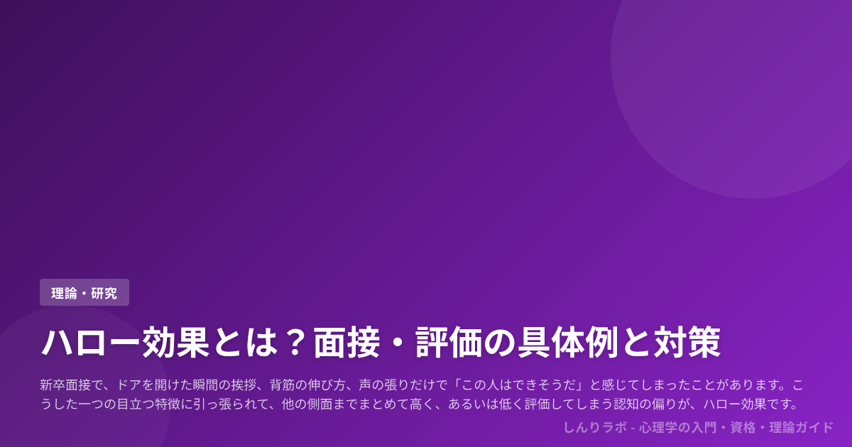 この記事では、面接・評価・日常での具体例を通じてハロー効果の正体をつかみ、ホーン効果、ピグマリオン効果、ホーソン効果、初頭効果との違いまで混同なく整理します。