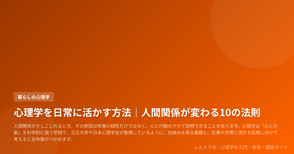 本記事の立場は、基礎心理学の視点を土台にしながら、日常の人間関係へ橋をかけることにあります。
