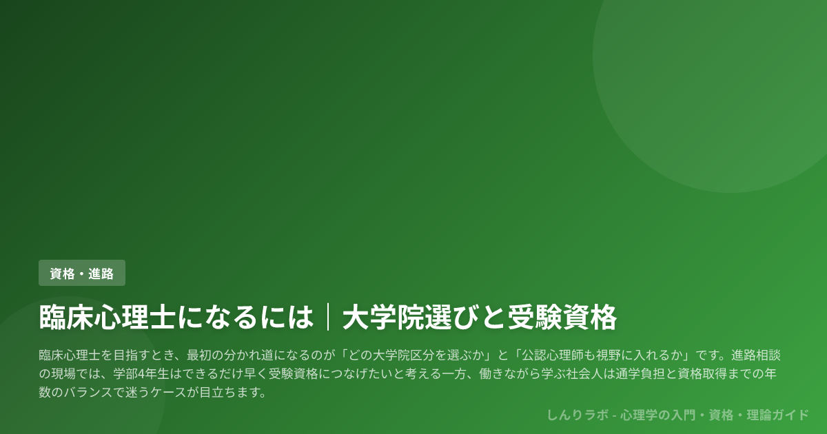 この記事では、第1種・第2種・専門職大学院の違い、受験資格、公認心理師との関係までを一本のロードマップにまとめ、自分に合う最短ルートと大学院選びの軸を見極められるように整理します。