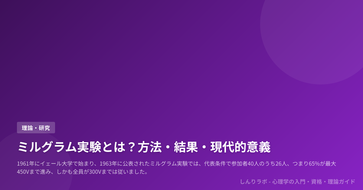 ミルグラムが1961年に始め、1963年に公表したこの研究は、代表条件で40人中65%が450Vまで進み、全員が300Vまで従ったという事実から、私たちの判断が権威や場の威信、段階的な要請に押されうることを突きつけました。