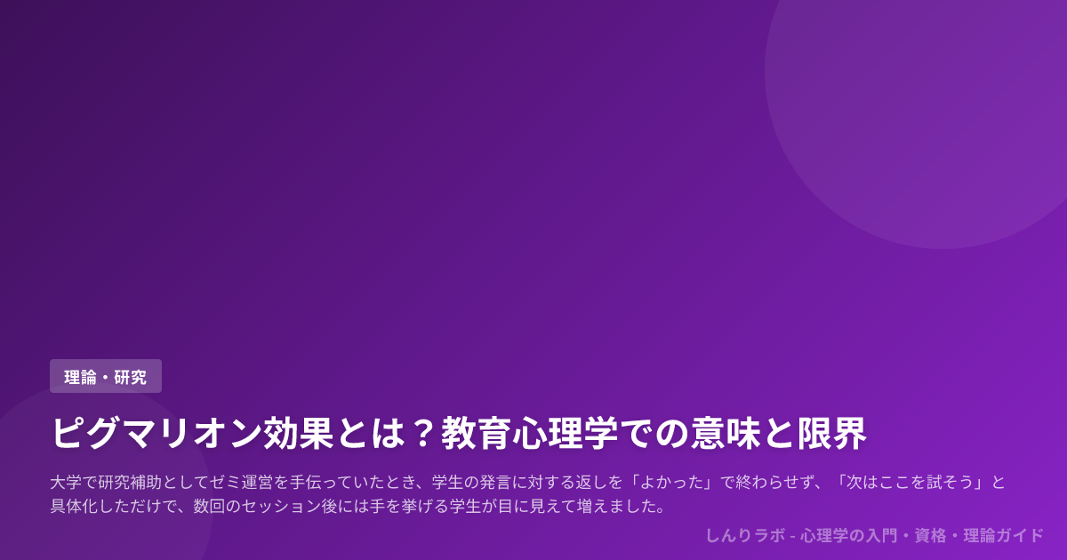 教育心理学の整理としては、玉川大学の大学院コラムでも、教師期待効果としてのピグマリオン効果が教育文脈で説明されています。