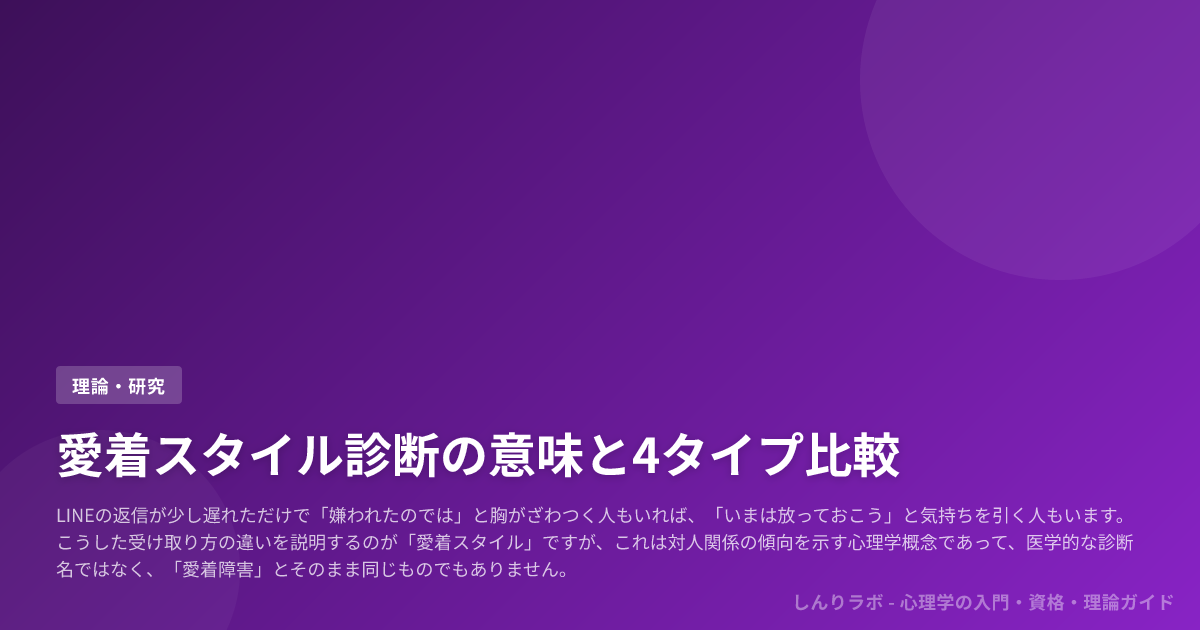 愛着スタイルは、相手との距離の取り方を理解するための学術概念であって、医学的な診断名でも、4タイプに人を当てはめる占いでもありません。