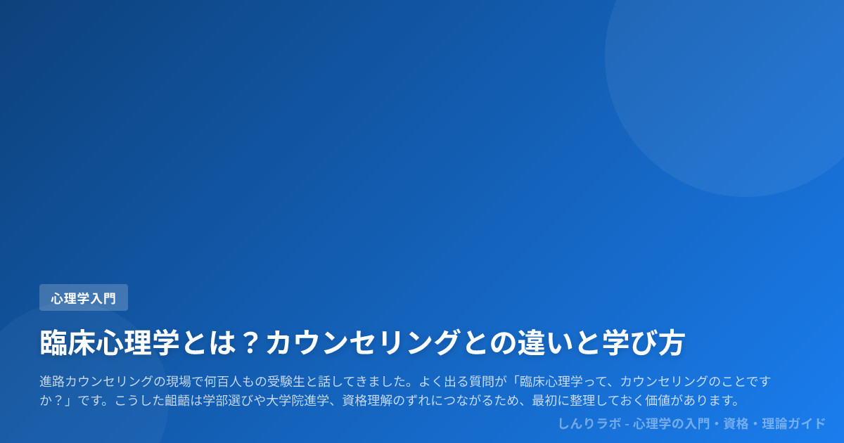 臨床心理学を「話を聴く仕事そのもの」と受け取ると、研究法やアセスメント、地域援助まで視野に入る本来の広がりが見えにくくなります。