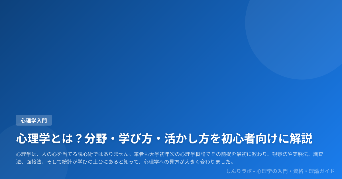 この記事は、心理学をこれから学びたい人に向けて、基礎心理学と応用心理学の全体地図、近代実験心理学の出発点とされる1879年のヴント以降の歴史、研究法、学び方までを一気に見渡せるように整理したものです。日本心理学会 が示すように、心理学は「心と行動」を科学的に研究する学問であり、その入口ではテクニック集よりも問いの立て方と確かめ方を押さえることが遠回りに見えて近道になります。